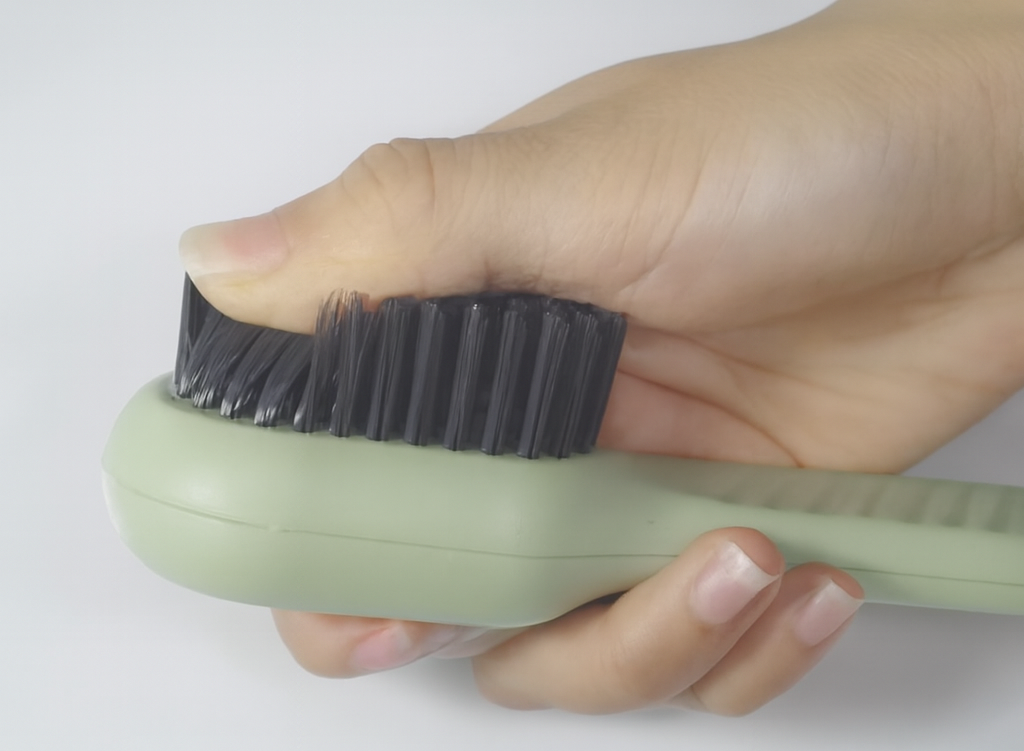 ShoeClean™ combines a liquid dispenser and brush in one, making cleaning fast, precise, and convenient for shoes and household surfaces.